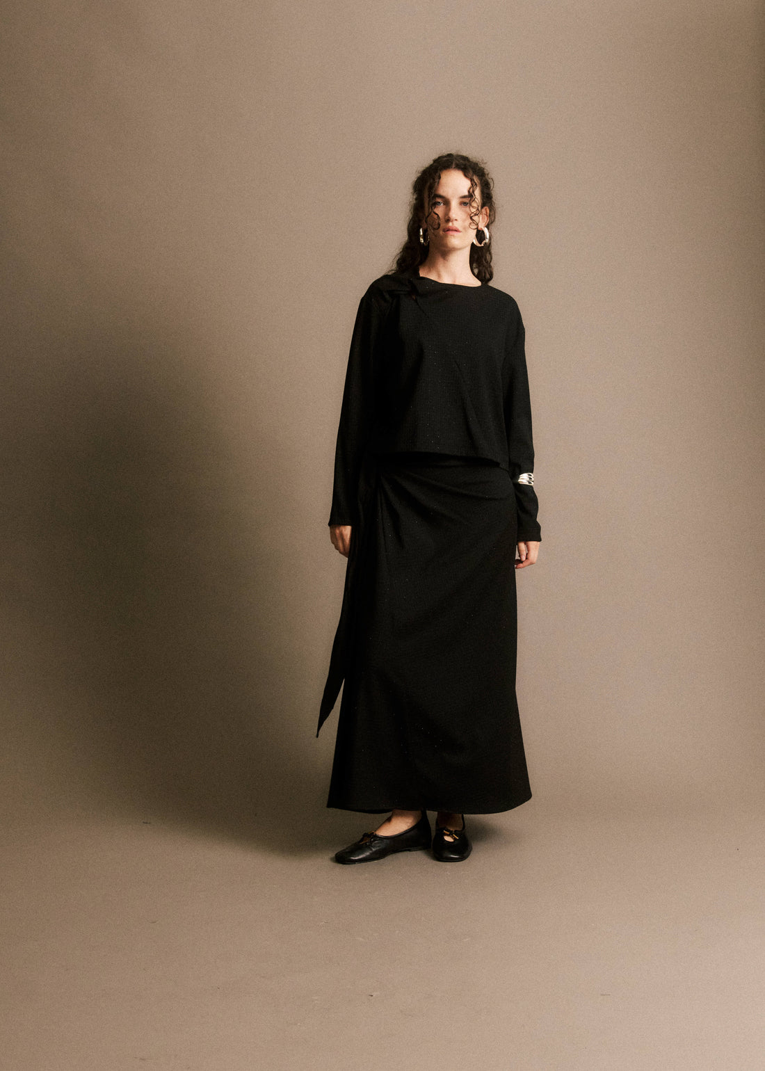 • Top à manches longues noir• Détail froncé à l'épaule• Col rond• Coupe droite et...