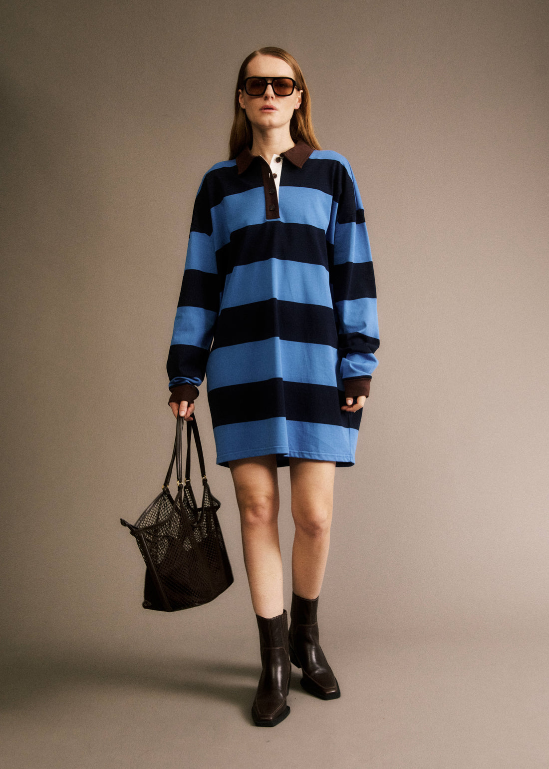 • Robe rayée style polo• Col polo contrasté• Larges rayures• Robe en coton• Manches longues