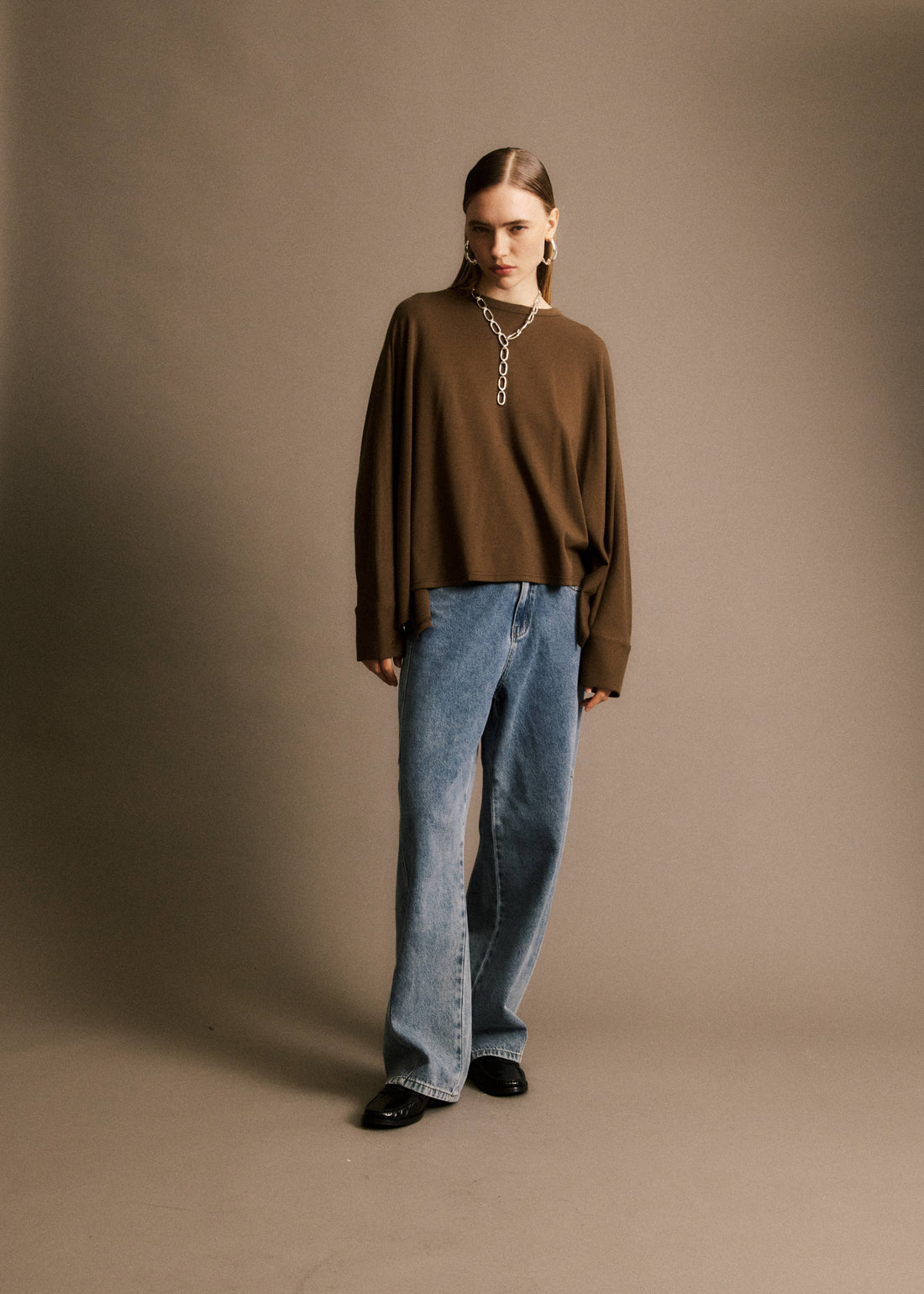 • T-shirt manches longues marron• Col rond• Manches longues• Top en coton
