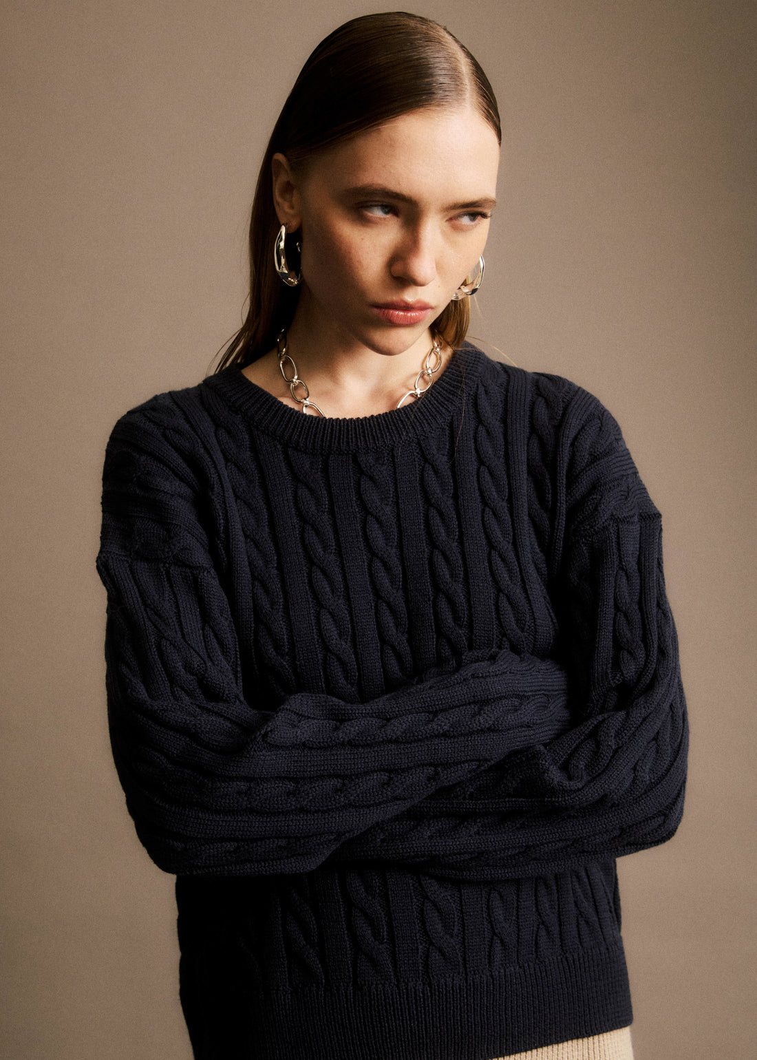 • Pull col cheminée en laine et alpaga crème• Col V croisé• Découpes style débardeur