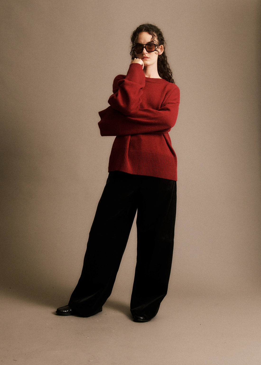 • Pull col V en laine noir• Coupe oversize• Broderie exclusive JIJI Studio• Finitions côtelées