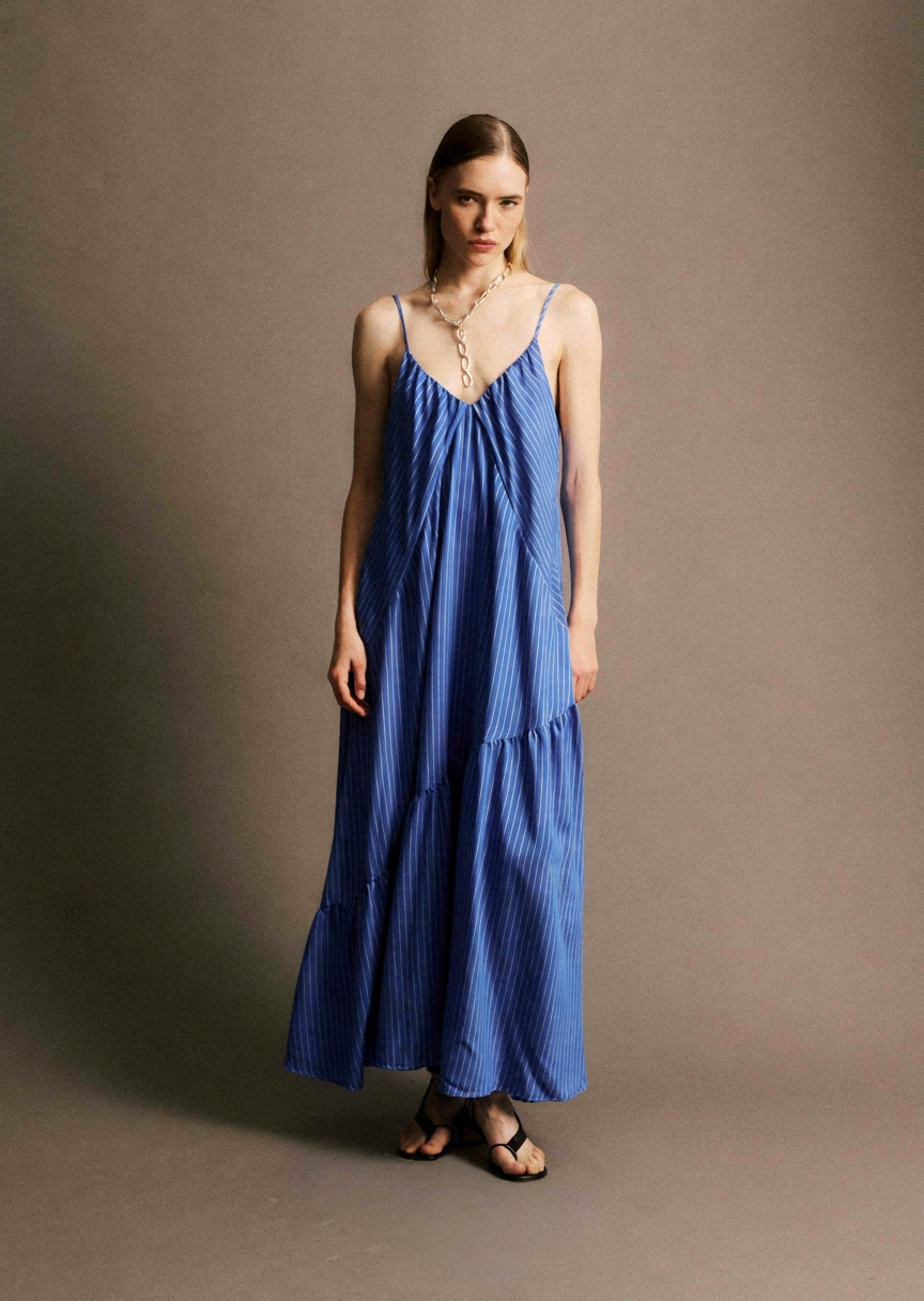 • Robe longue à bretelles fines ajustables• Décolleté en V profond avec fronces sous poitrine•...