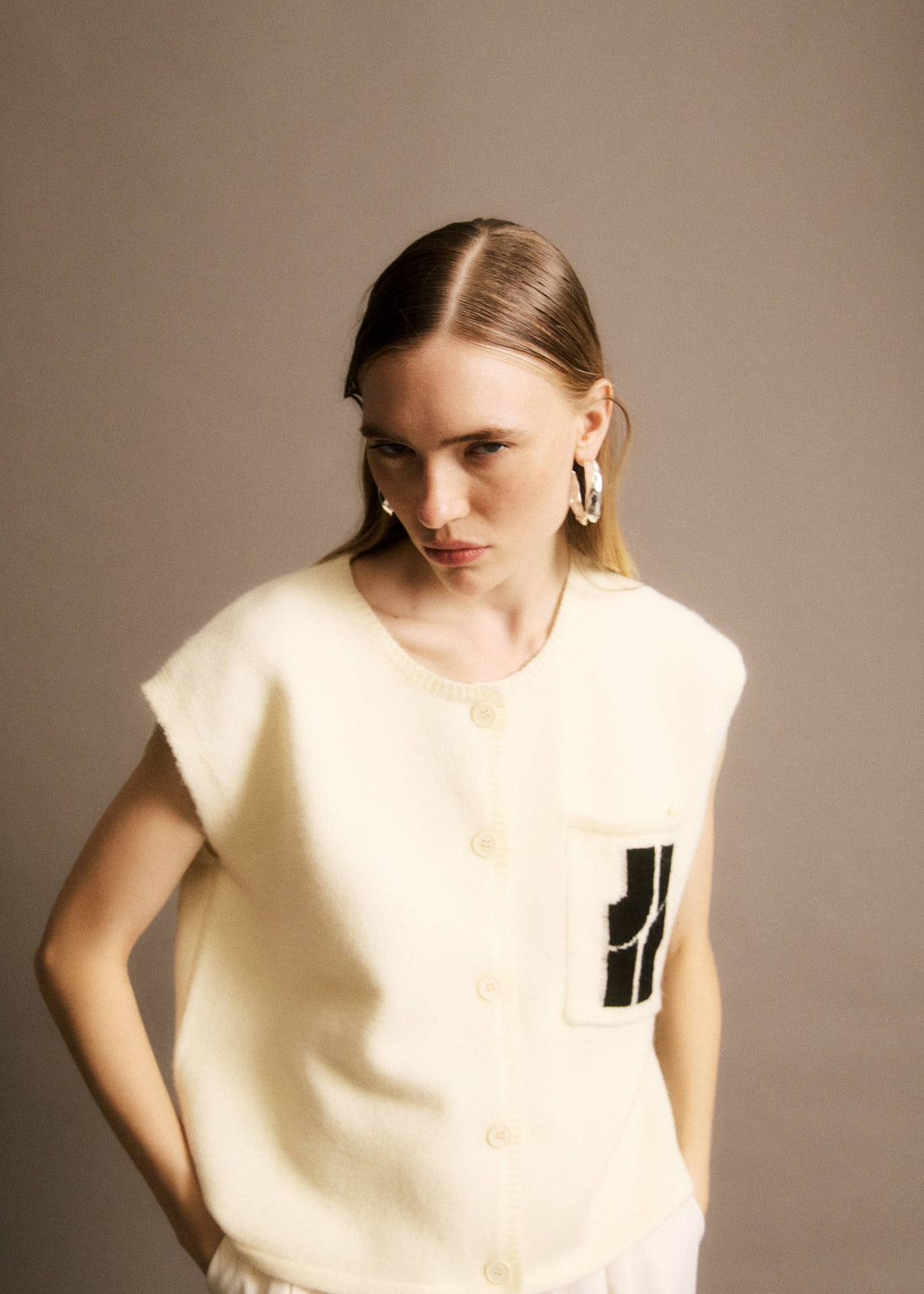 • Cardigan sans manches à encolure ronde• Fermeture boutonnée sur le devant• Logo brodé noir...