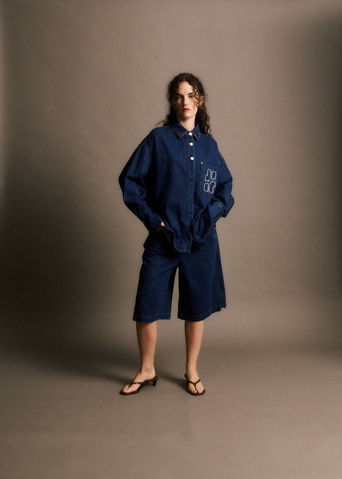 • Surchemise en denim coupe ample• Col chemise classique avec fermeture boutons-pression métalliques• Détail brodé...