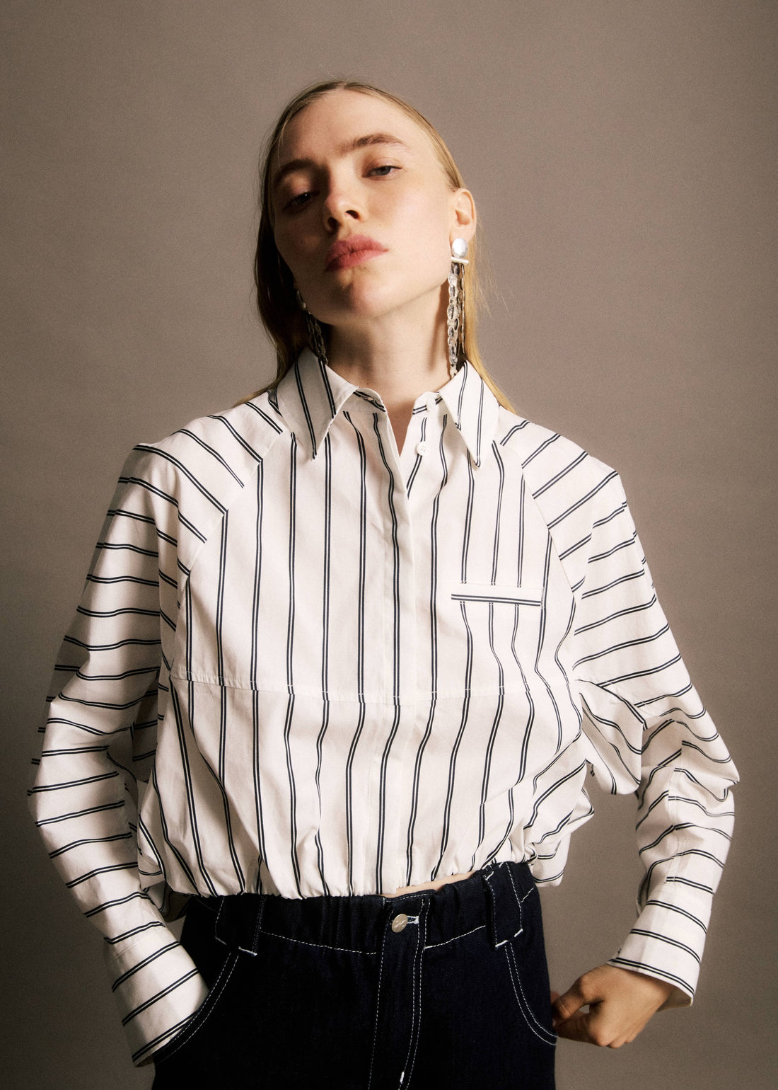 •Top en coton avec manches longues bouffantes• Col rond et poignets élastiqués resserrés• Taille froncée...