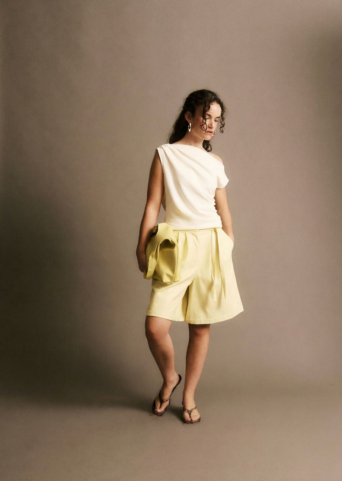 • Top à coupe asymétrique avec une épaule dénudée• Encolure oblique créant un drapé élégant•...