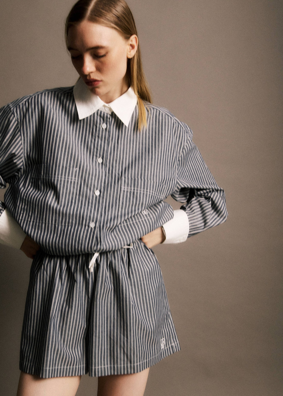 • Short taille haute avec ceinture intégrée• Rayures verticales fines sur toute la surface• Fermeture...