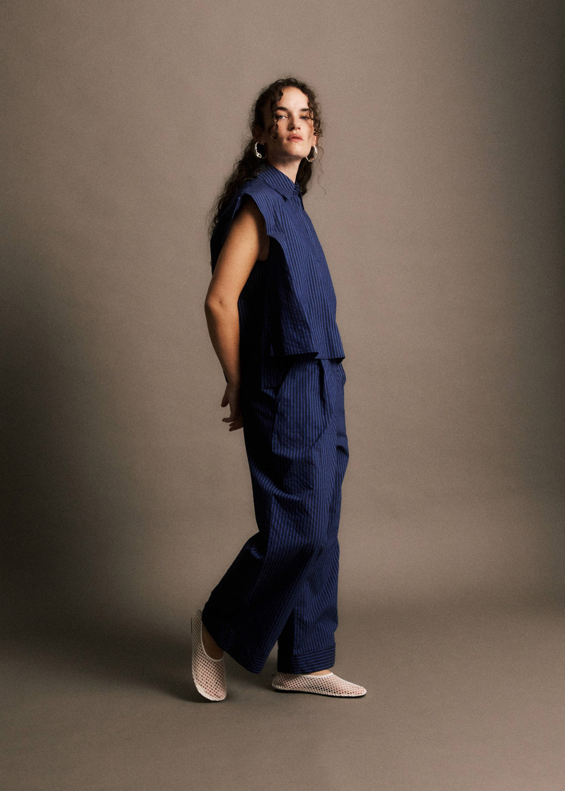 • Chemise sans manches à coupe droite• Col chemise et fermeture par boutons sur le...