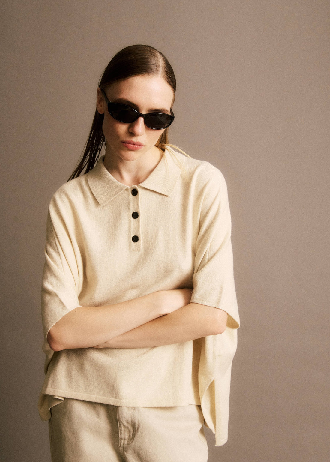 • Relaxed oversized polo shirt• Pointed shirt collar and contrasting 3-button placket• Dropped short sleeves...