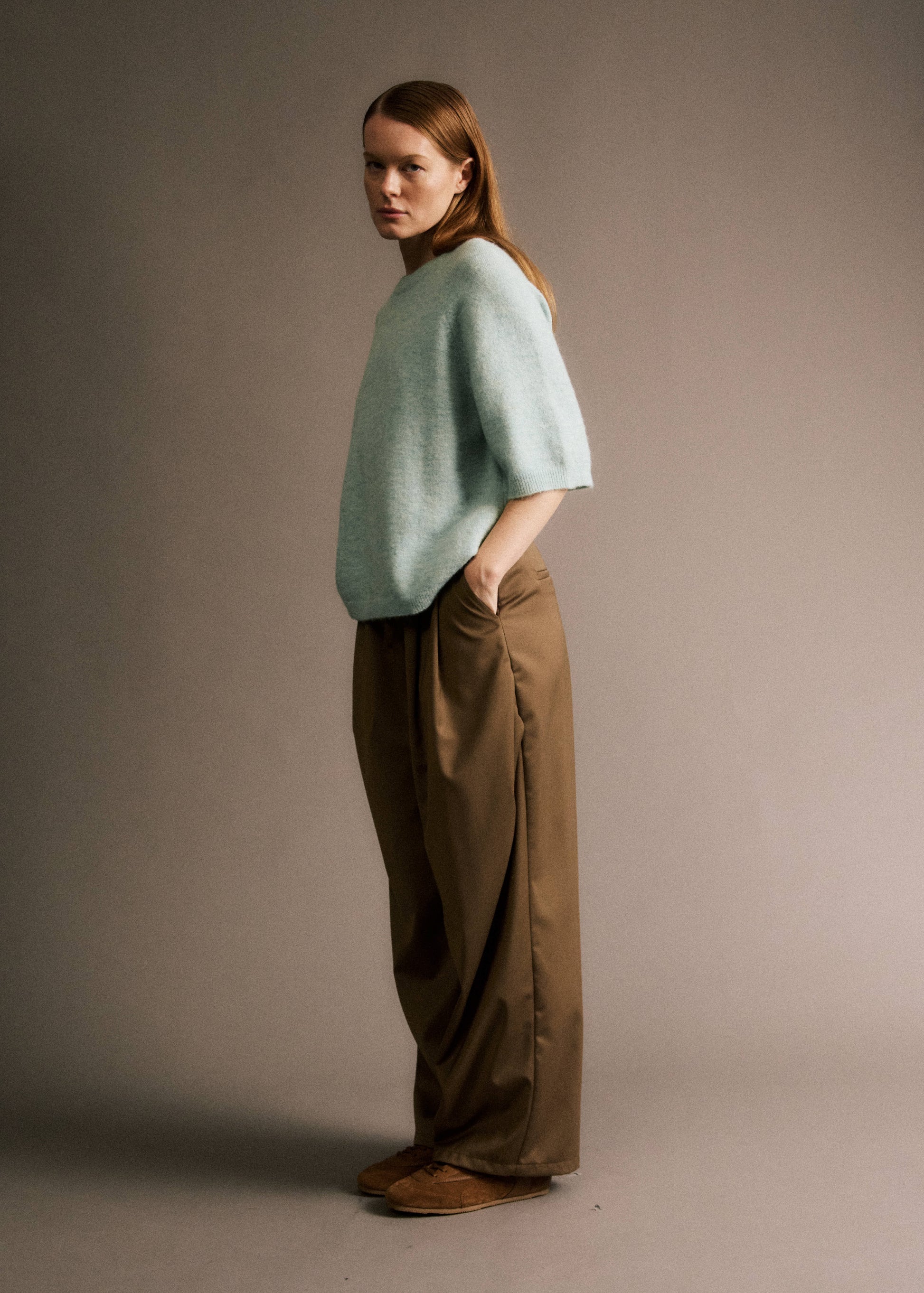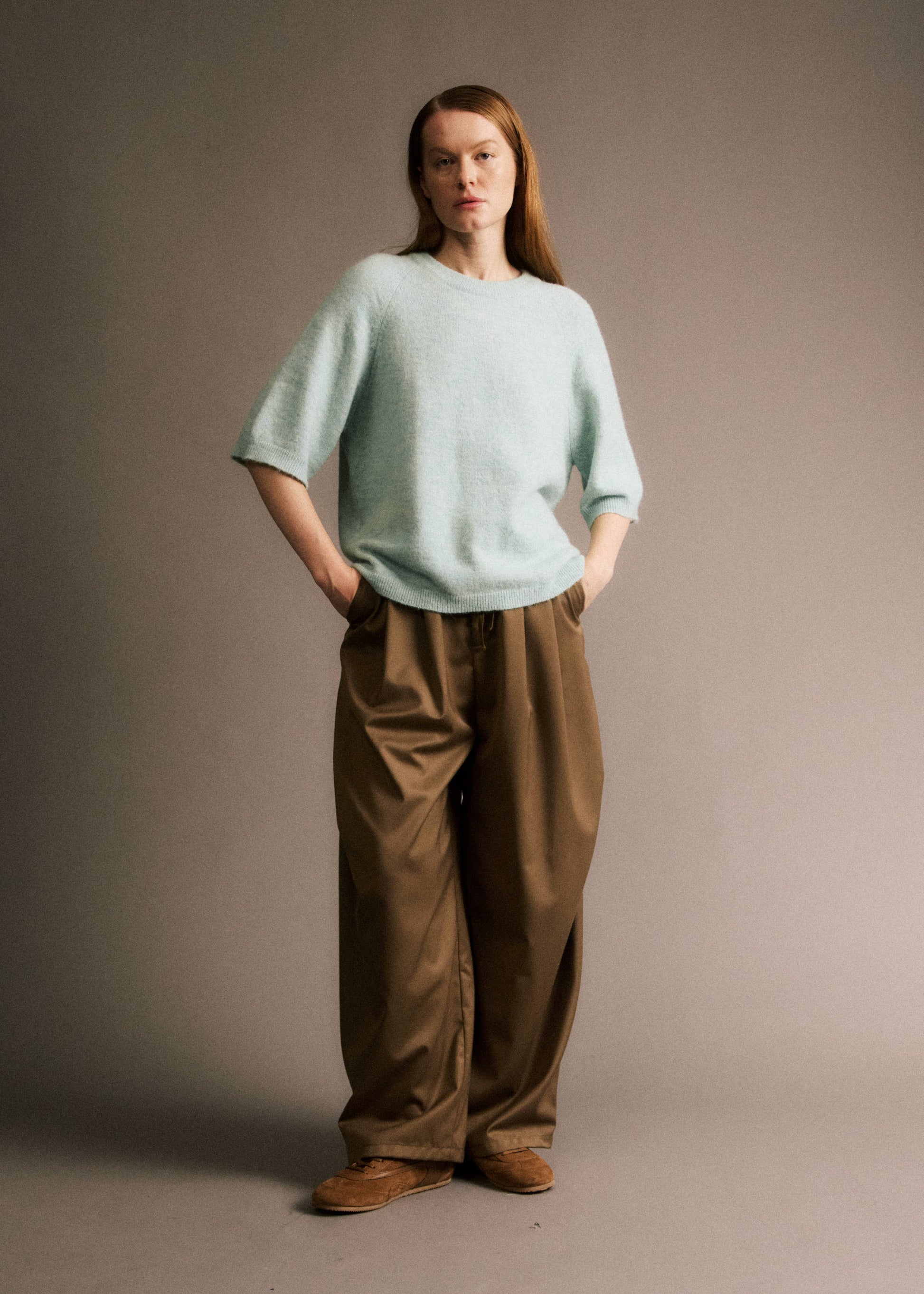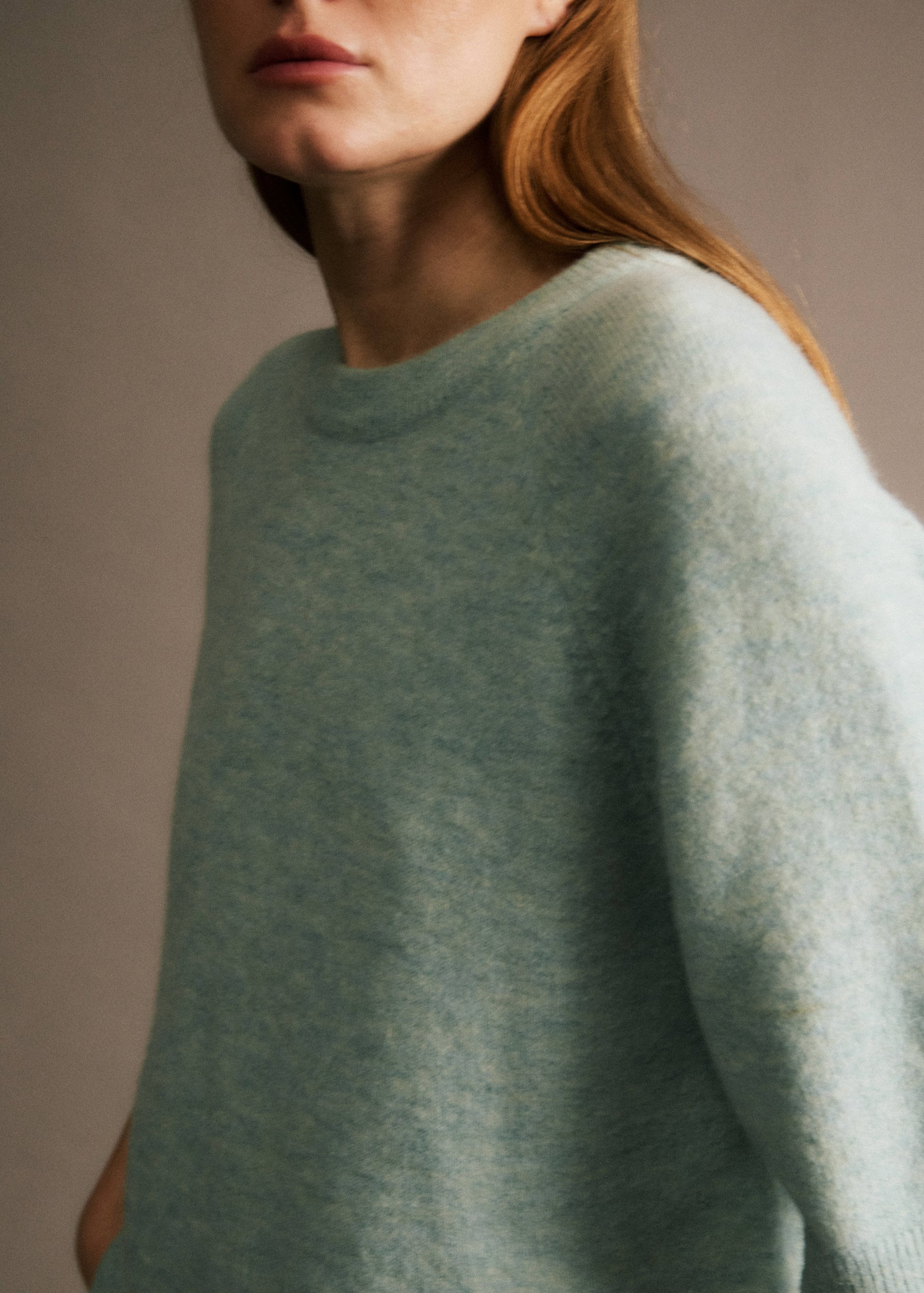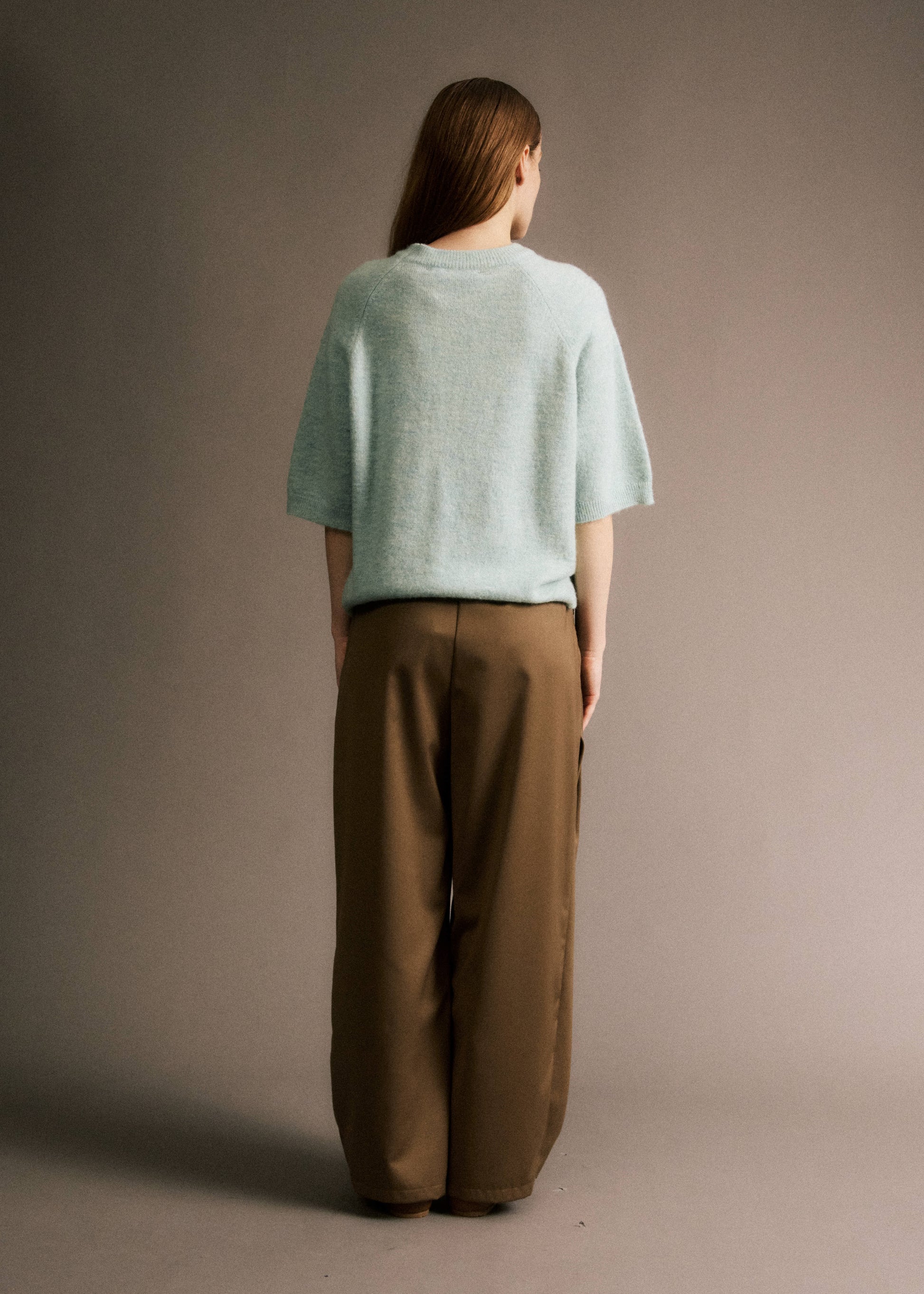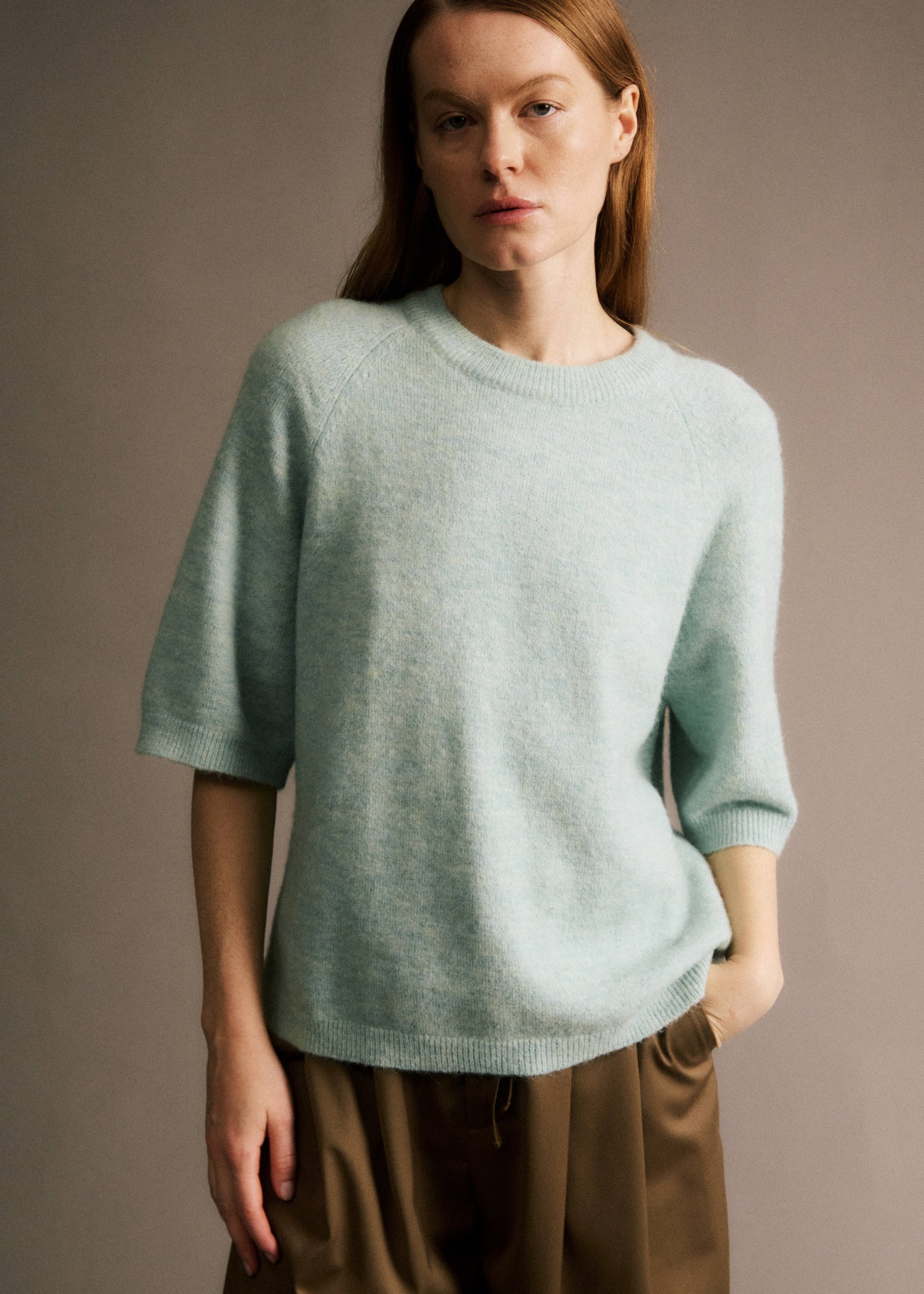 • Pull manches courtes en laine et alpaga turquoise