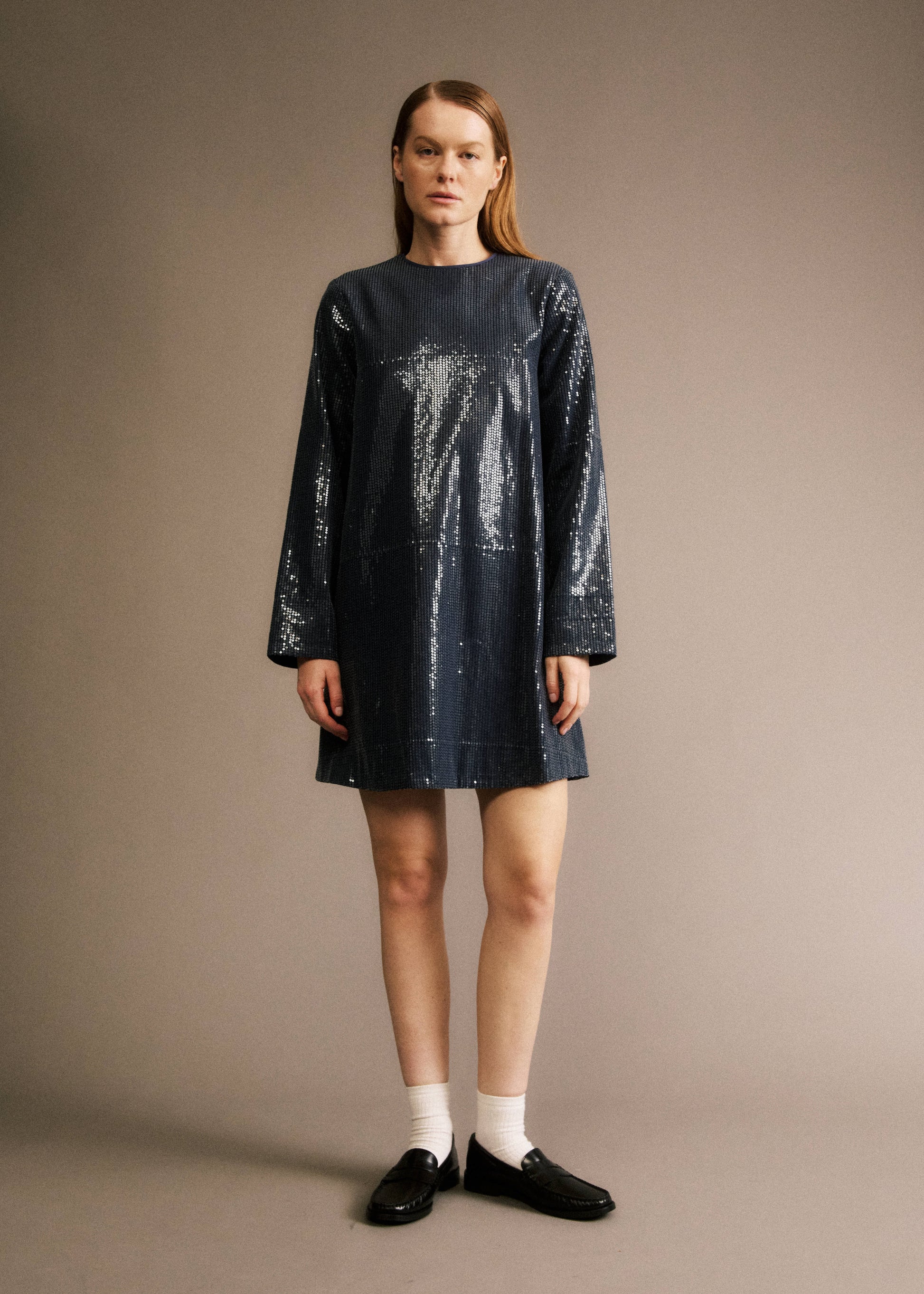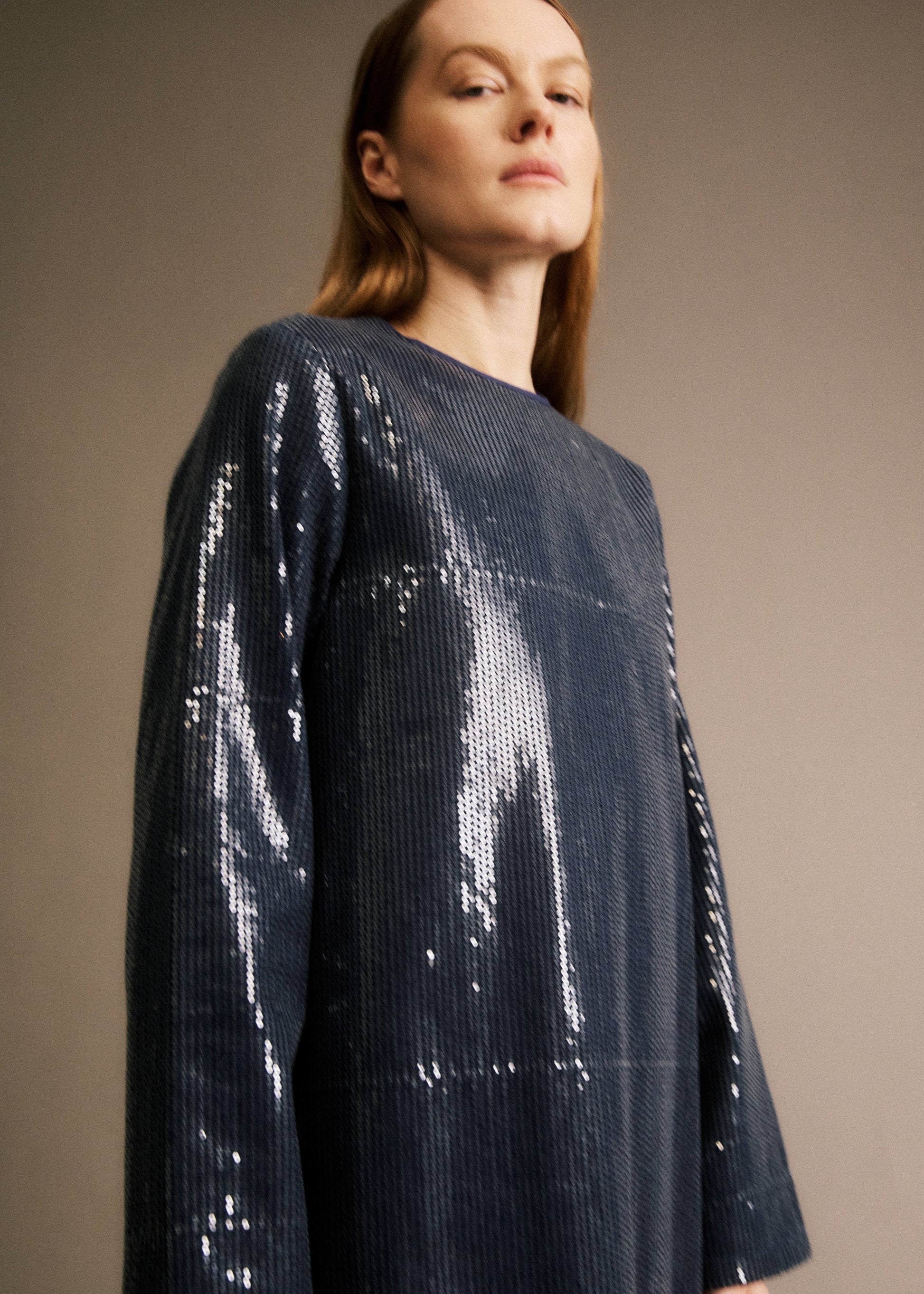 • Robe longue bleu marine à sequins